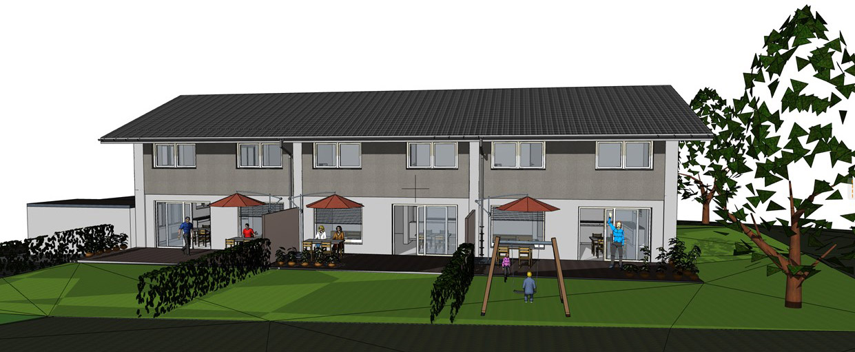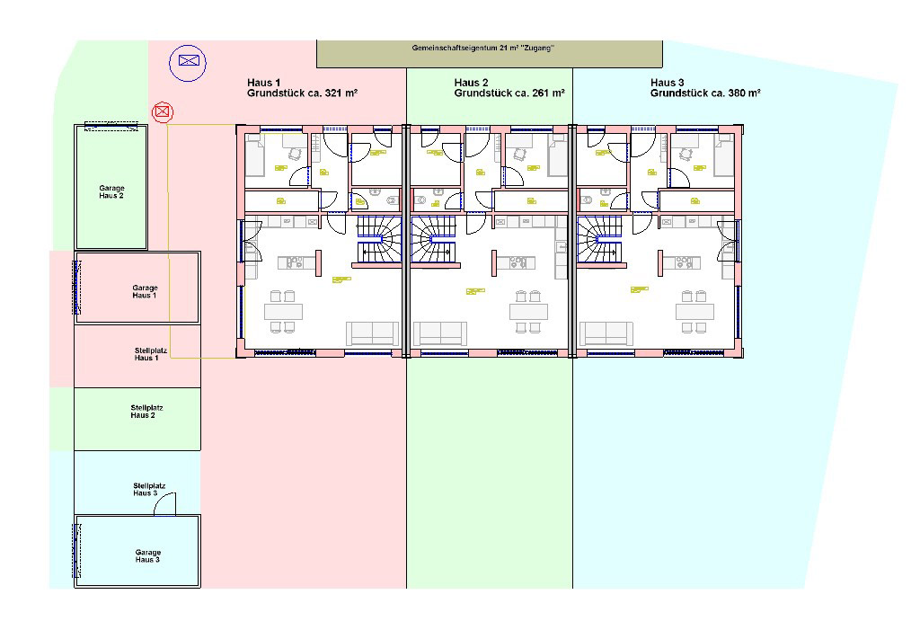 Auf dem Bauplatz Nr. 3 wird ein Reihenhaus mit drei Wohneinheiten in KfW-55 Effizienzhaus Standard errichtet.