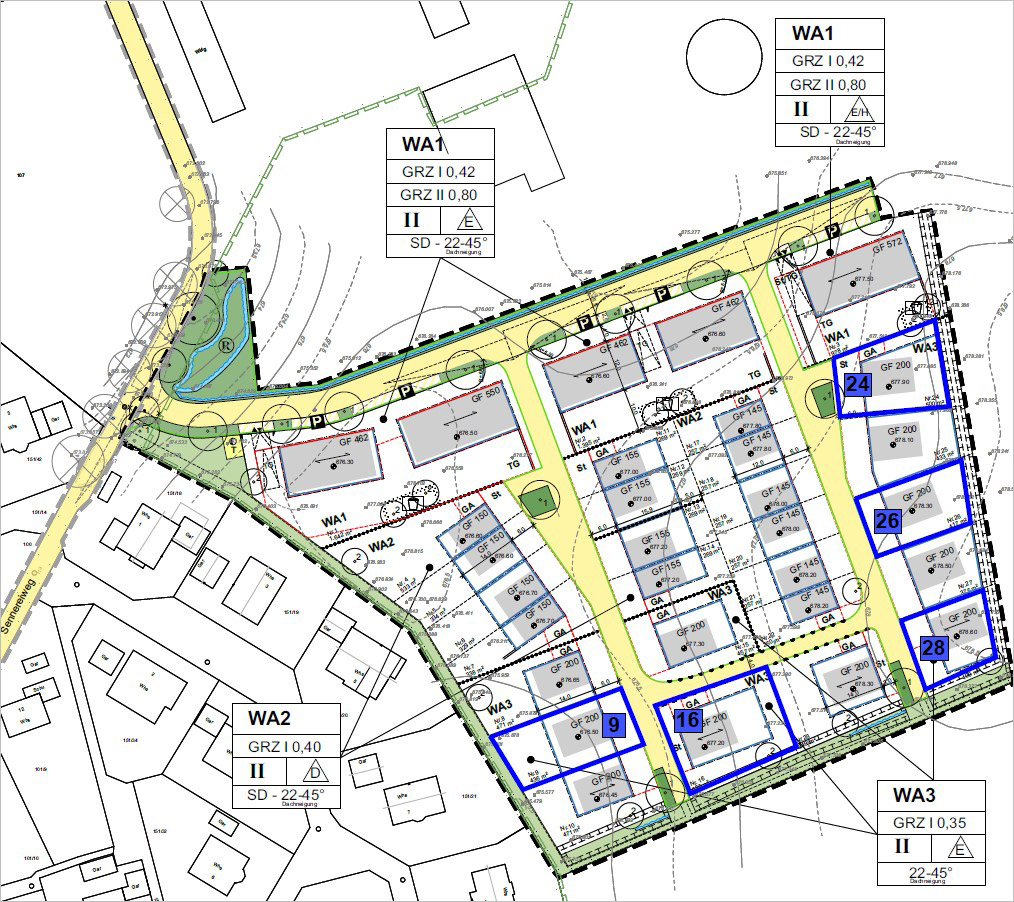 Weitere Informationen zu den baurechtlichen Vorgaben entnehmen Sie bitte dem Bebauungsplan, den Sie auf der Website der Gemeinde Wolfegg unter folgendem Link einsehen können: